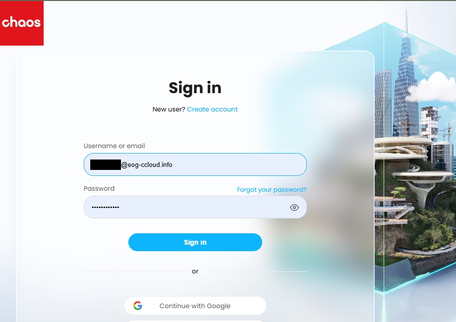 4.サインインを求められた際は、V-Rayクラウドのアカウントでログインしてください。